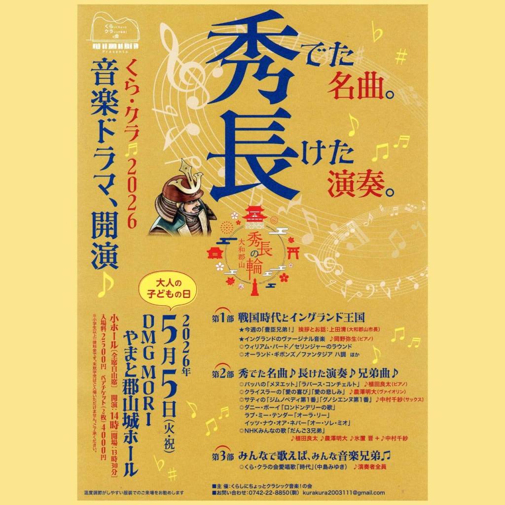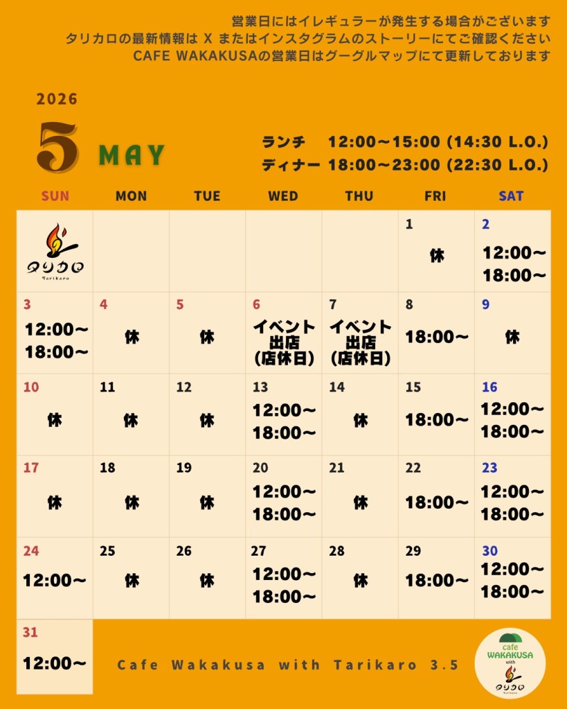 晩春の候、いかがお過ごしでしょうか?さて、5月の営業予定をお伝えさせていただきます。5/6,7にはシェフェスタ@橿原に出店を予定しております。5/5には郡山城ホールにて、5/10には東大阪市文化創造館に出演予定ですので、よろしければ足をお運びください!(最下部にチラシを貼らせていただきます。)