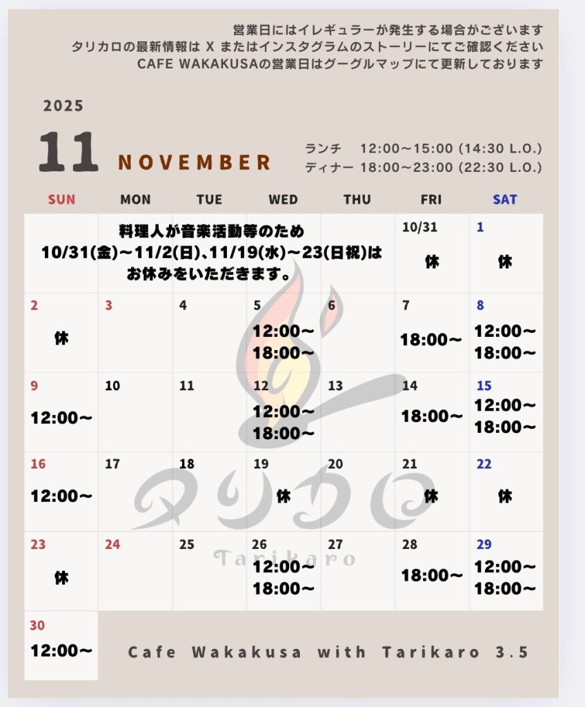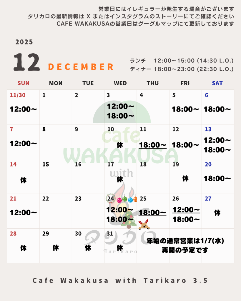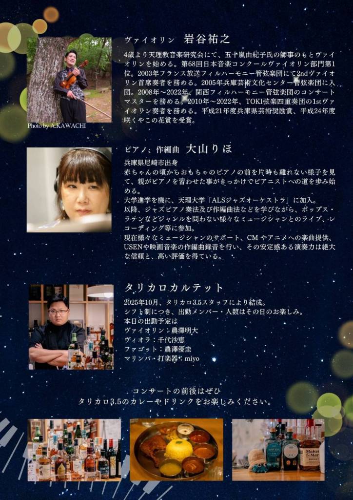 なお、タリカロミュージックナイトvol.2は12月24日の夜開催予定です。そちらは申し込み不要ですので、お気軽にお越しください!